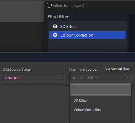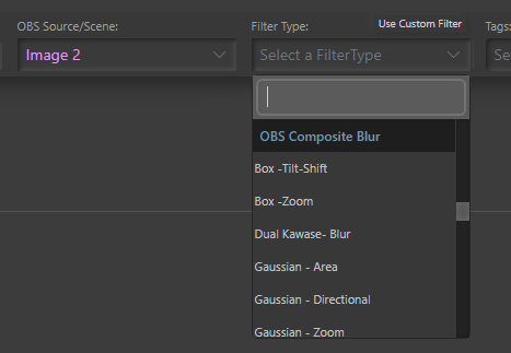 This changes the Filter Type dropdown to a list of filters that are currently added to the OBS source (or scene) that is selected.