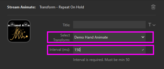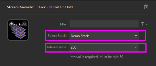 2. Stack Repeat on Hold – Choose a stack animation and set Interval (ms) – The animation will repeat every Interval while the button is held down