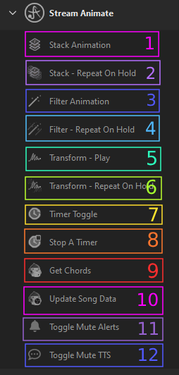 1. Play Stack Animation – Choose a stack animation to play when pressed. -Note: Updates ‘direction’ of animation if the Stack has Reverse Toggle enabled (does not apply if stack is a child of another stack)