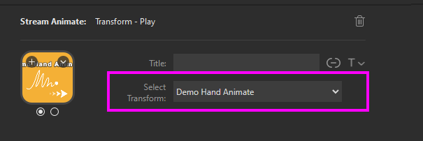5. Play Transform Animation – Choose a transform animation to play when pressed. -Note: Updates ‘direction’ of animation if the Transform has Reverse Toggle enabled (does not apply if Transform is added to a stack)