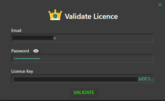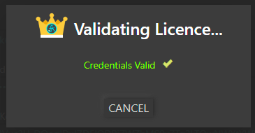 Validating licence… checks login details, if the Licence is associated with the account and is valid.
