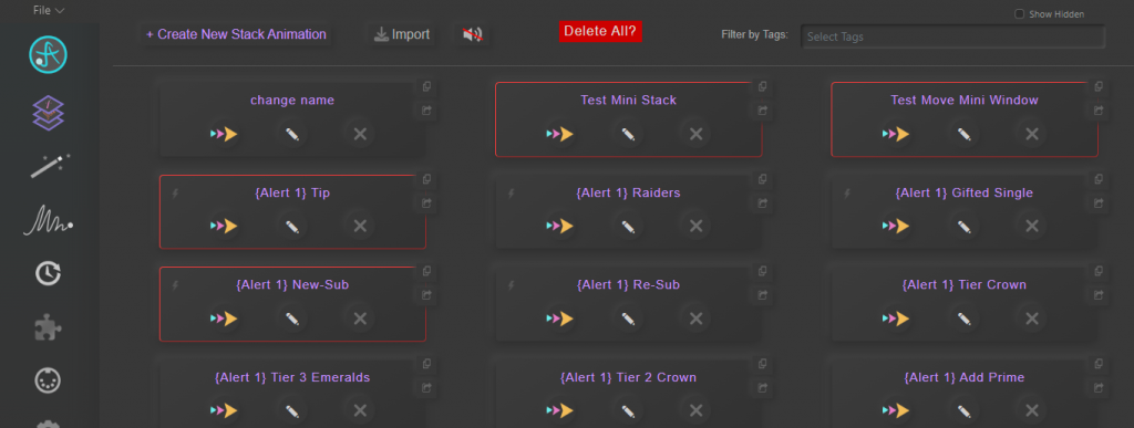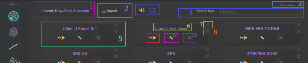 11. Remove/Delete the animation – Can only be deleted if it’s not added to a Stack, Midi or any Extensions (e.g. Twitch Alert)